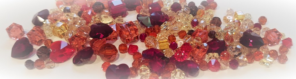 I spent hours yesterday making bracelets. I used a lot of beads that have been in my cupboard for months, waiting for their moment to shine. It’s a considerable list of potential ingredients that I sort into the scientific categories of rocks, sparkles, and metal. I made 30 bracelets! Result! And I liked two of them.